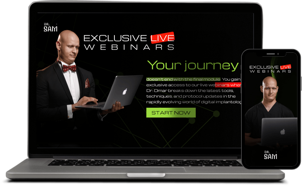 Gain exclusive access to our periodic live webinars where Dr. Omar breaks down the latest tools, techniques, and protocol updates in the rapidly evolving world of digital implantology.